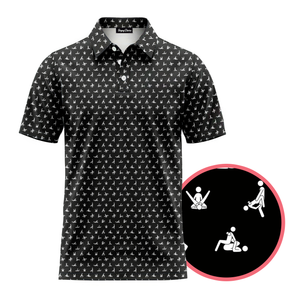 Make your golf buddies laugh with this 100% Funny NSFW polo featuring a humorous "Sex position", Kama Sutra design. Perfect for tournaments, gifts, or casual rounds!