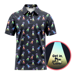 Make your golf buddies laugh with this 100% Funny NSFW polo featuring a humorous "Get In Loser" design. Perfect for tournaments, gifts, or casual rounds!